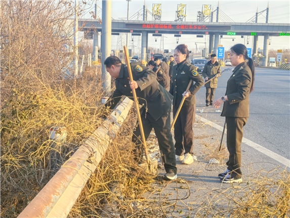 冬季风干物燥,收费广场白色垃圾、烟头易堆积,边沟内枯枝腐叶大量留存,不仅影响站区美观,更存在极大火灾隐患。对此,刘建辉站长提前部署、合理分工,明确责任区域与工作标准,确保清理工作高效有序推进。