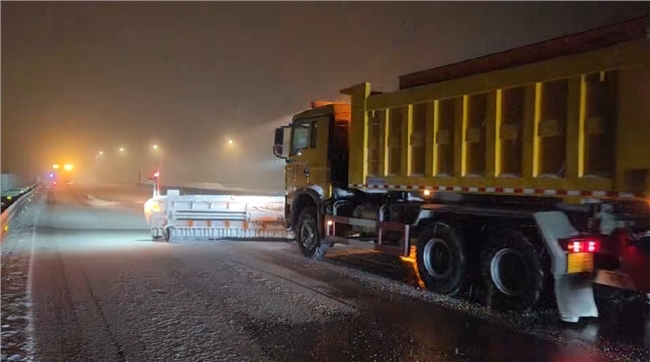 此轮除雪保畅作业,保阜公司全线以“人工+机械”不间断作业方式对桥涵、匝道及滞留车辆进行严密排查、悉心疏导,重点针对积雪、结冰及长上下陡坡、桥梁、隧道进出口等重点路段,不分昼夜,连续奋战,做到措施到位、物资到位、设备到位、人员到位、信息上报到位,全力消除路面积雪结冰。